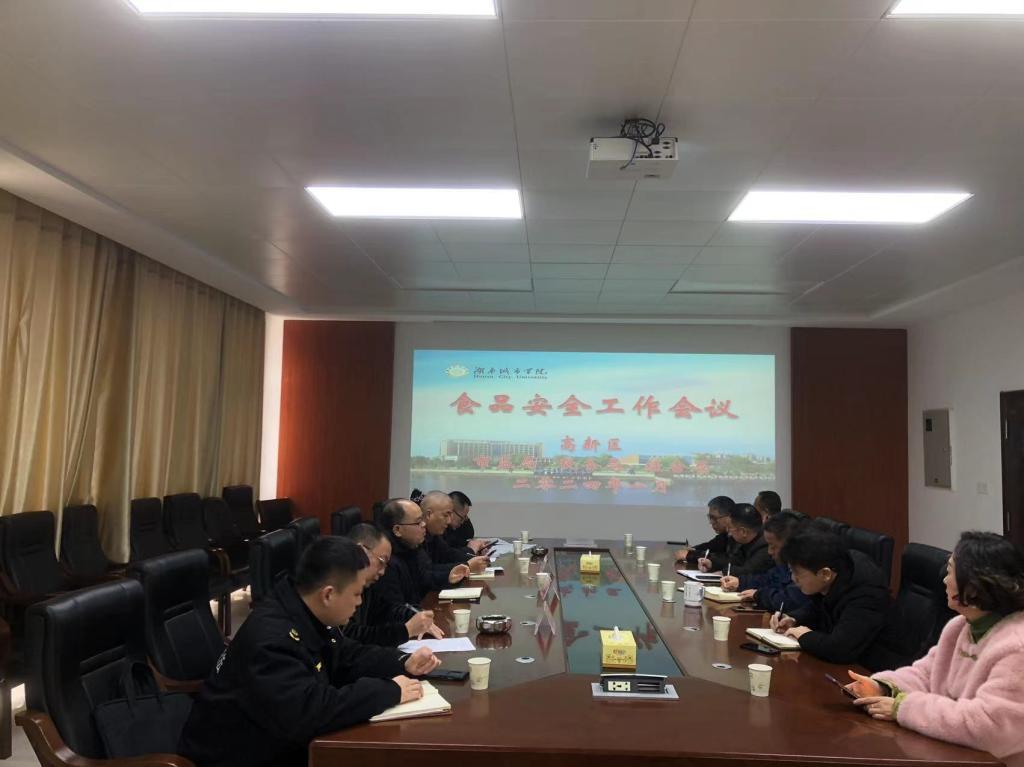 (撰稿 聂奕勋)2024年1月17日上午,益阳市高新区市场监督管理局、税务局及经济合作局根据湖南省食品安全委员会办公室等五部门联合文件《关于印发<校园食品安全排查专项行动实施方案>的通知》要求在我校召开了食品安全工作相关会议。我校后勤管理处相关工作人员以及学生食堂托管经营餐饮公司项目经理参会。