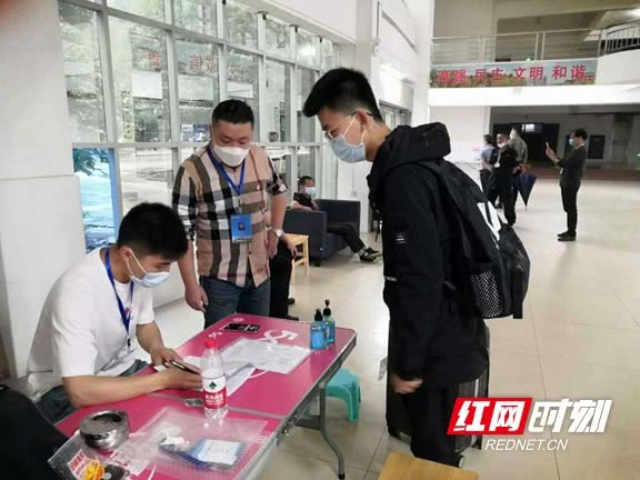 9日上午7:30,学校南门广场入校指定报到点,佩戴口罩、手持额温枪的工作人员严阵以待,正式迎接返校学生。除益阳本地学生乘坐私家车和公共交通工具返校外,该校特意安排专车前往益阳汽车东站、汽车北站和火车站(含朝阳汽车站)迎接返校学生,以减少途中配载,减少交叉感染可能性。