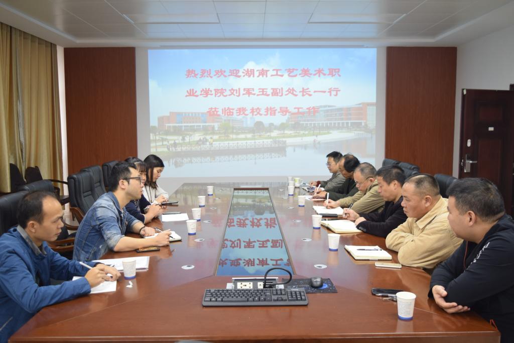 2019年10月16日上午8:30,湖南工业美术职业学院后勤处副处长(主持工作)刘军玉、副处长符桐、干事熊艳红、徐勇一行四人来我校进行了考察交流。我校采购与招投标管理中心冷云辉处长,基建与后勤管理处汪佑民处长、钟雪飞副处长、杨少清副处长、综合科科长秦科、饮食服务中心主任郭虎军等参与了交流会议。
