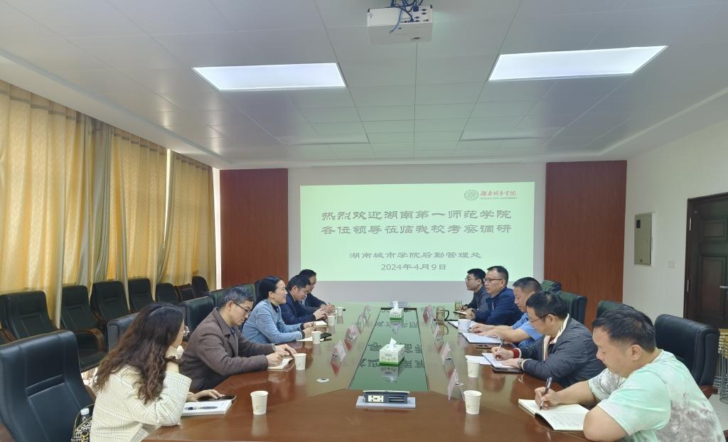(撰稿 曾宁亮)4月9日上午,湖南第一师范学院后勤处处长彭善琼一行5人来访我校,就后勤服务工作进行交流座谈。后勤管理处处长钟雪飞、副处长肖萼国、秦科及有关科室、中心负责人参加了座谈会。